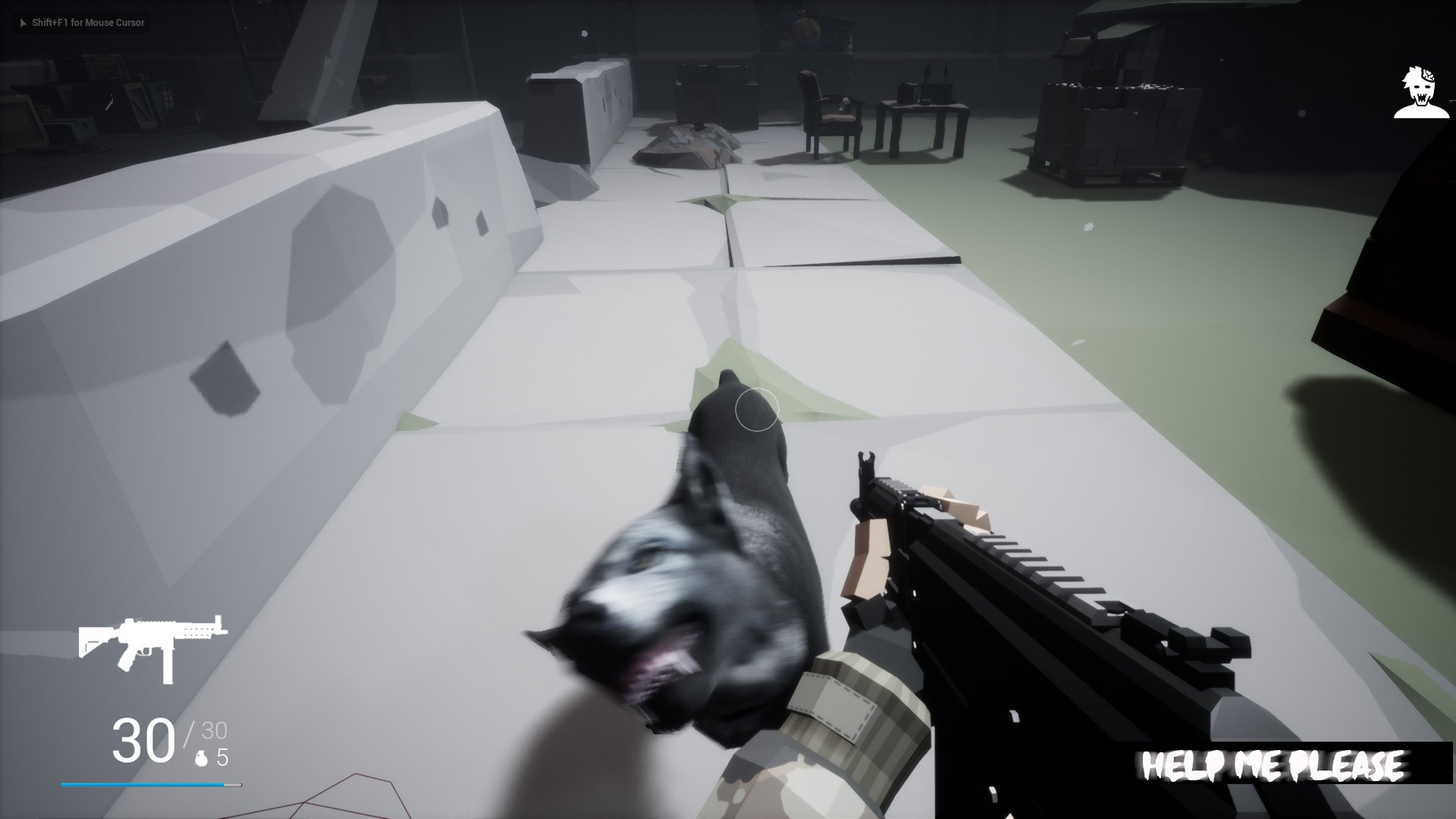 Help Me Please - Try to survive the first location of the game. Beware of traps, mines, and zombies; remember, everything is against you here. If you suddenly find yourself running low on ammo, it means you're wasting it. Remember, there's always a knife. However, when using the knife, keep in mind that you only have one life, and you can't replenish it, so letting zombies get too close is a bad idea. Use traps to your advantage and eliminate zombies with them.
