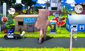 - Destroy the world as a giant human hand in action-puzzle gameplay, with customization options for the hand’s size and skin color.