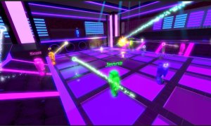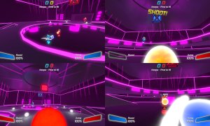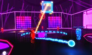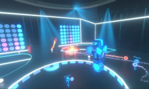 Robot Roller-Derby Disco Dodgeball is a unique and exhilarating FPS sports game that combines the one-hit-kill projectile combat of classic dodgeball with the fluid movement of skateboarding, all set in vibrant, neon-lit dance club arenas. Players control mustachioed unicycle robots, dodging, deflecting, and catching enemy fire while performing outrageous aerial stunt shots. The game offers a wide variety of modes, including 21 different multiplayer modes and solo/co-op challenges such as Hoops, Grand Prix racing, and classic Elimination.