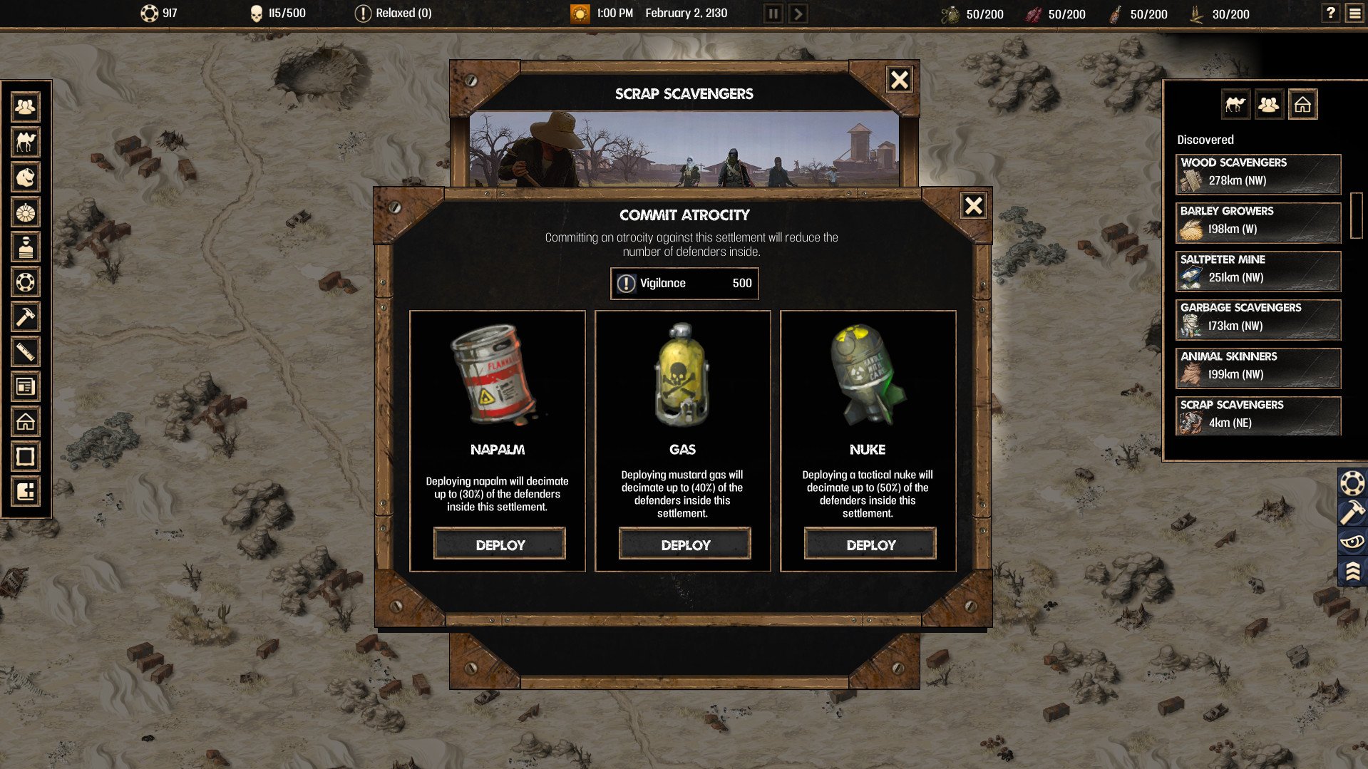 The game features a dynamic, procedurally generated map, ensuring each playthrough is unique. You'll scavenge for materials, deploy weapons of mass destruction, and manage resources like food, water, and beer. Additionally, you can kidnap hostages, discover powerful artifacts, and disrupt the local economy to conquer it.