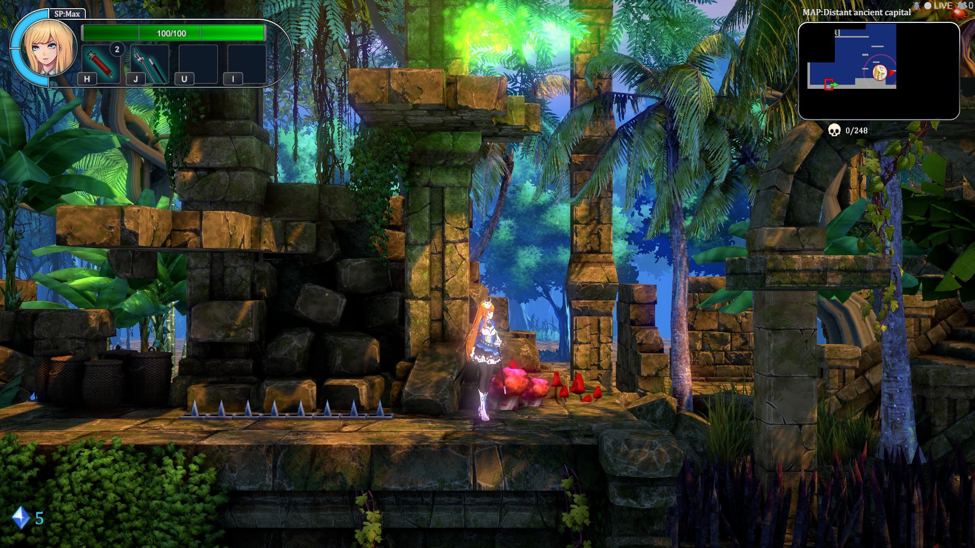 The game features a 2.5D toon-rendered side-scrolling design, offering smooth and fluid motion. Players will appreciate the responsive controls, where dodges can cancel punishments, and jumps can be fine-tuned for precision. The gameplay incorporates soul-like elements, emphasizing limited supplies, strategic footwork, and dodging. Each weapon in the game has its own set of magical moves and combos, allowing players to seamlessly switch between light and heavy attacks and dodge maneuvers.