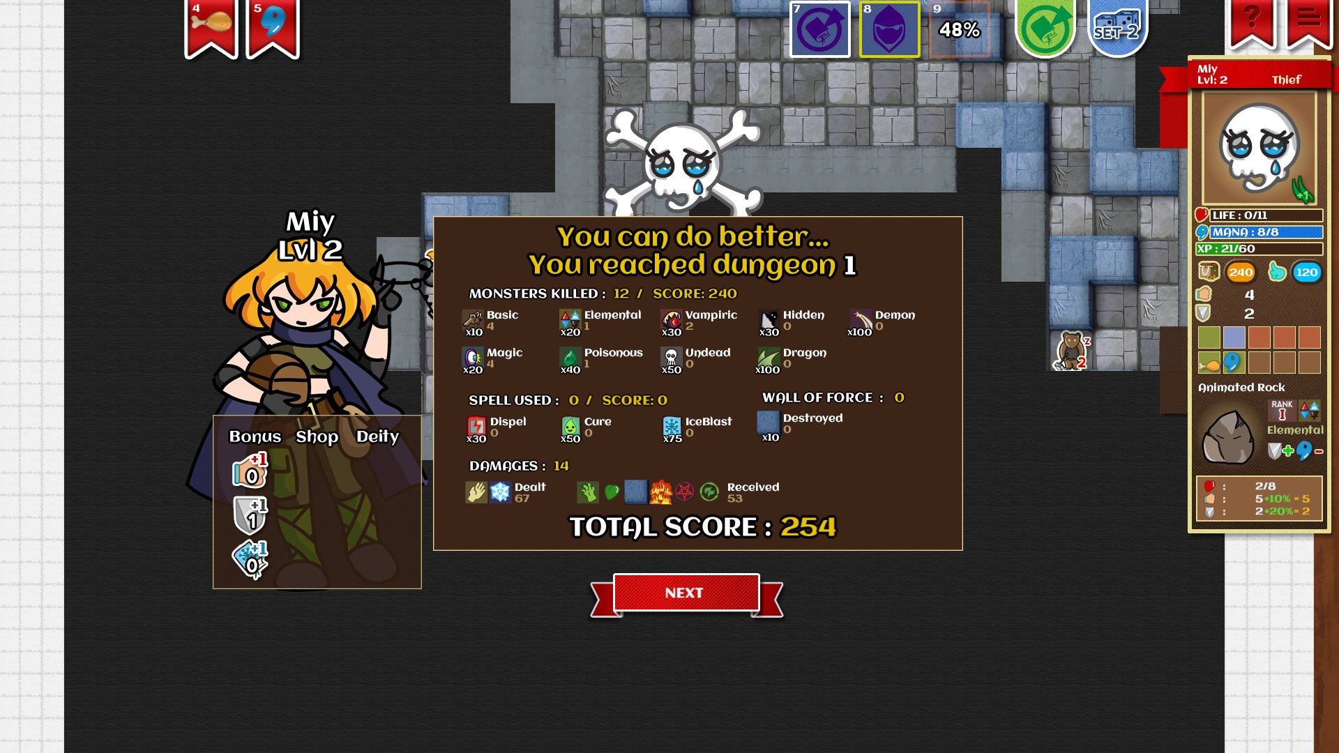 3. Rogue Mode: Your character continues to level up across dungeons until they meet their demise. Your legacy will be your name in the Hall of Fame and more powerful dice sets for future Rogue runs.