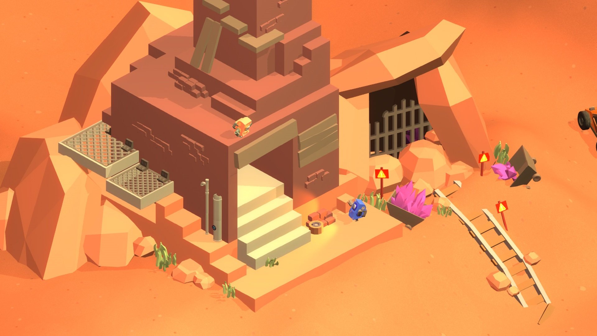 Equipped with advanced astro-miner technology, players can use grappling hooks to pick up and throw objects, including each other, across gaps or cliffs. To collect all the ore in each level, you'll need to master various tools and obstacles such as buttons, crates, lanterns, bouncy pads, rockets, and tanks.