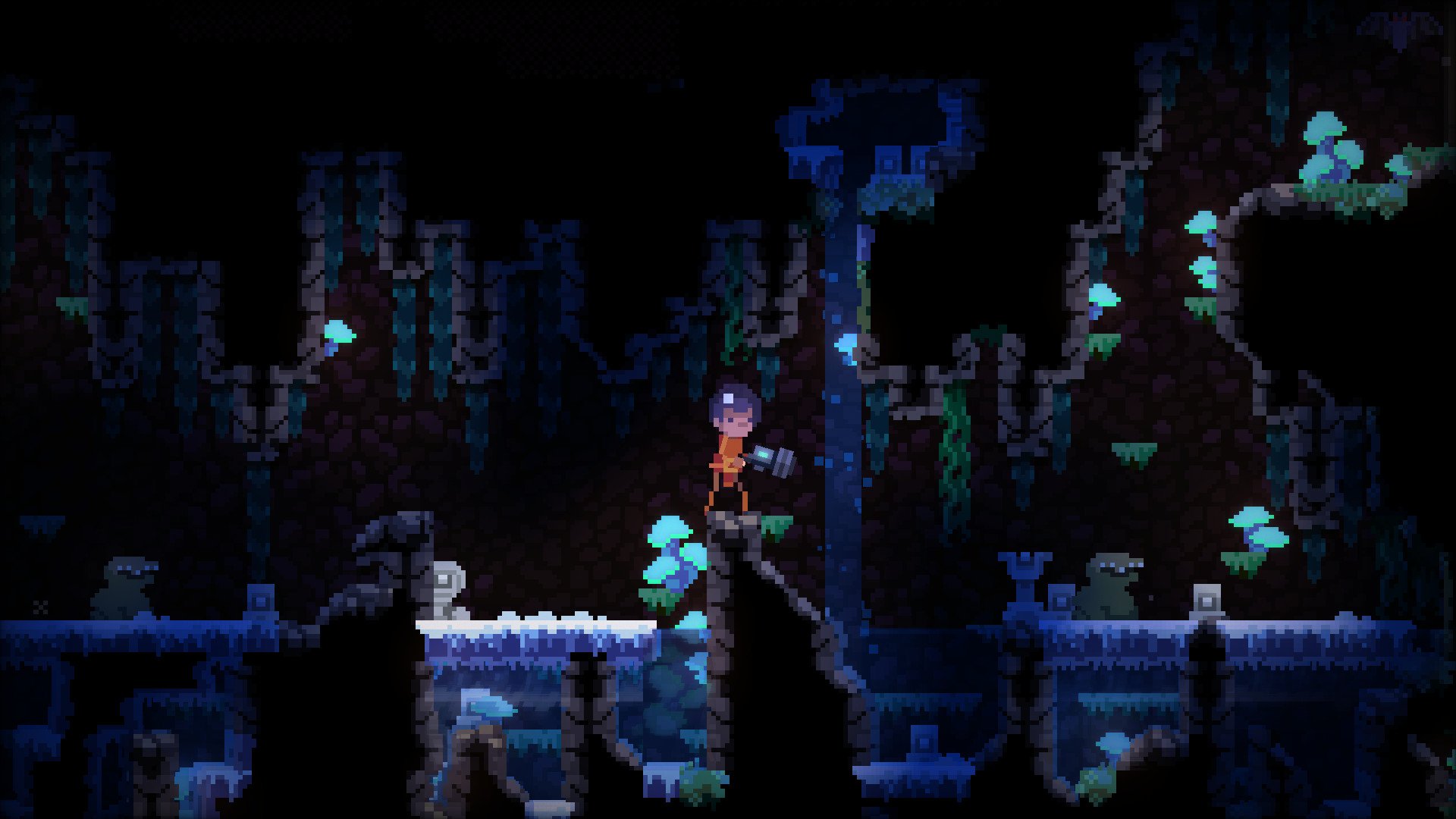 MoonQuest is an adventure game where each playthrough generates a unique world filled with diverse landscapes like wild forests, towering mountains, and ancient ruins. Players can gather resources, discover treasures, and craft weapons to aid them on their journey. The game features a fully destructible environment, allowing players to cut through vines or demolish walls to explore hidden areas.
