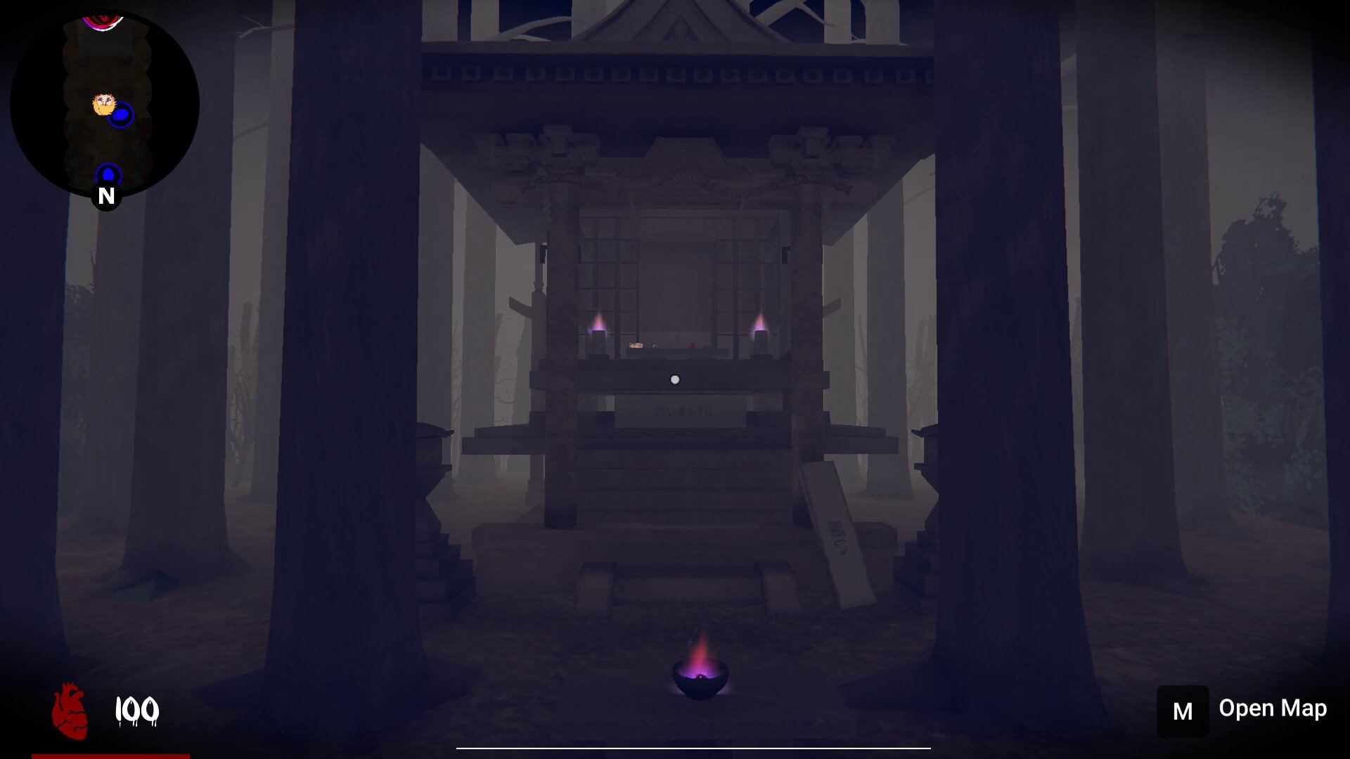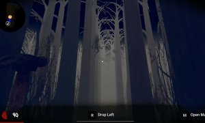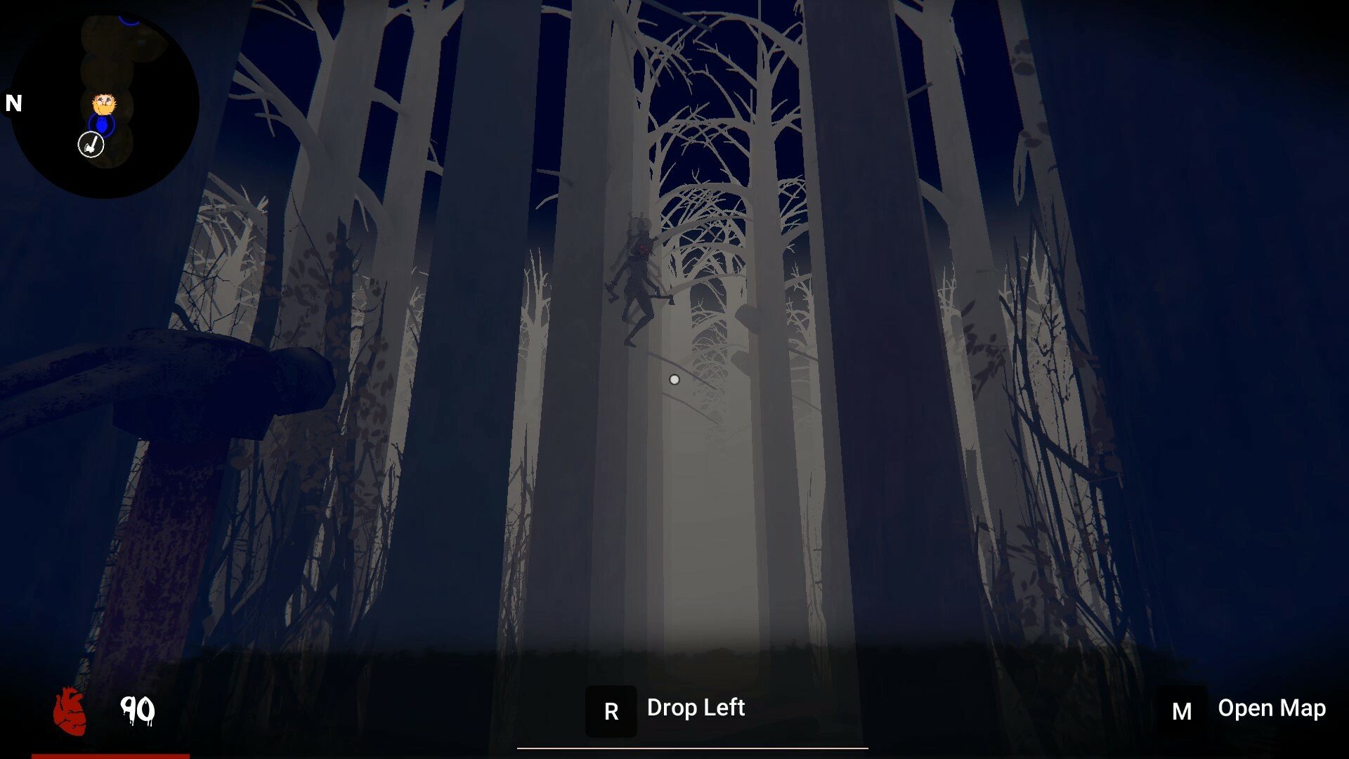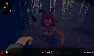 The game features a combat system allowing players to use melee weapons and block enemy attacks. The forest map is randomly generated with three variations, making navigation challenging. The AI uses trees and bushes to hide and stalk the player.