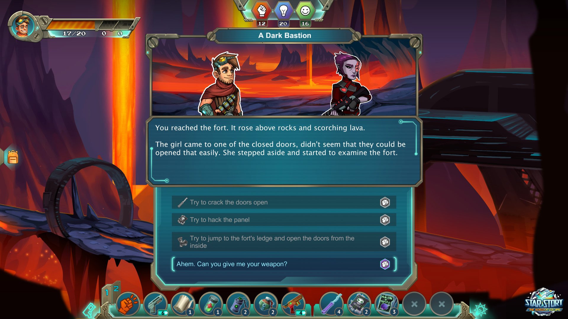 Star Story: The Horizon Escape is an engaging turn-based adventure game infused with text-RPG elements that takes you on an unexpected journey through a mysterious planet. You play as Van Klik, an aspiring space-archaeologist whose research mission quickly turns into a desperate fight for survival after your spaceship crashes on the enigmatic world of Horizon. With no one to help but your wits (or so it seems), you must navigate an intricate story where every decision counts.