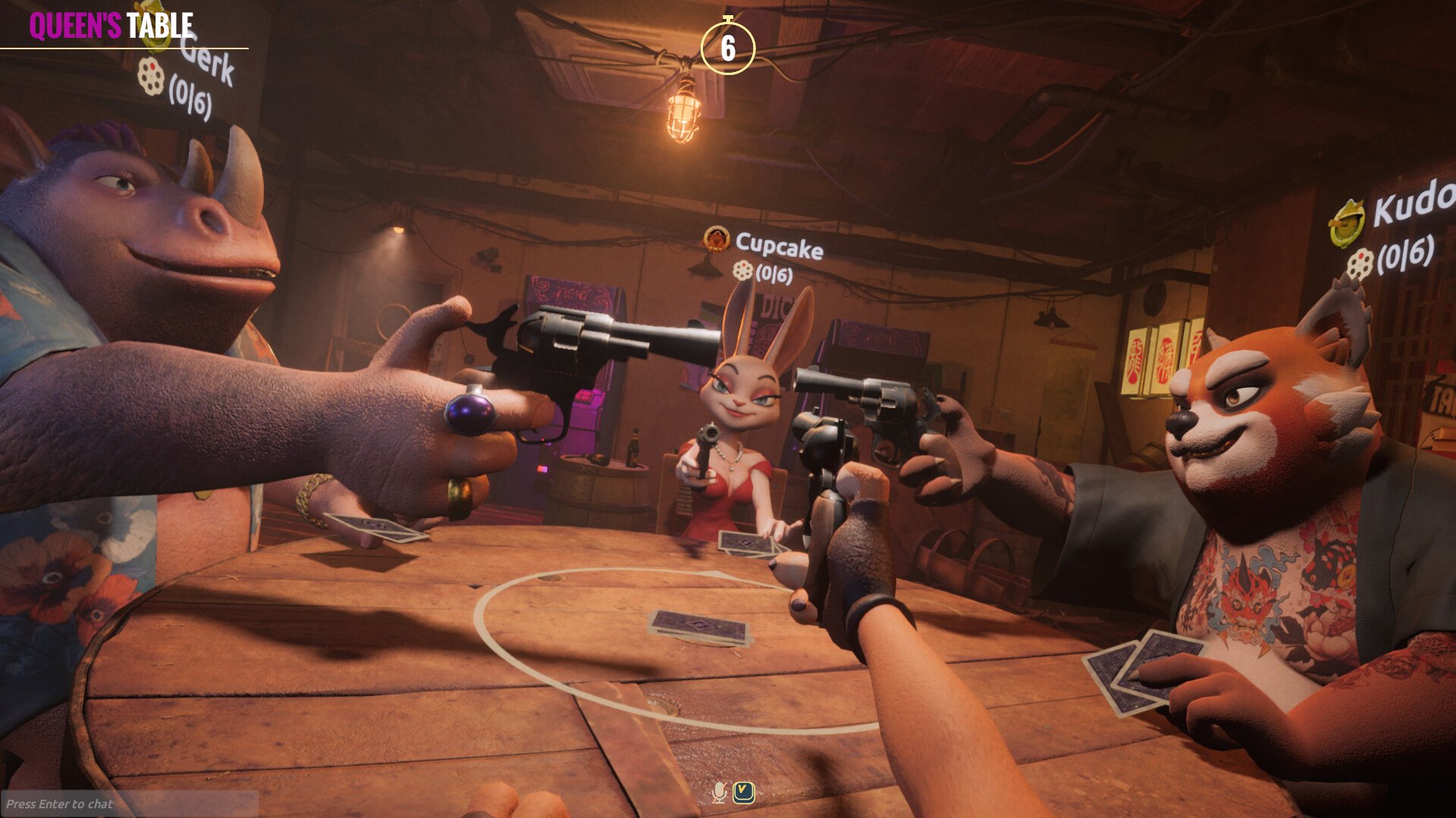 The atmosphere in Liar’s Bar is palpable, combining the tension of bluffing with the fun of an interactive bar setting. The game’s emphasis on deceit and risk creates a thrilling experience that keeps you guessing with every decision. It’s not just a game – it’s a playground for those who love a challenge, a test of their ability to read others and manage their own secrets.