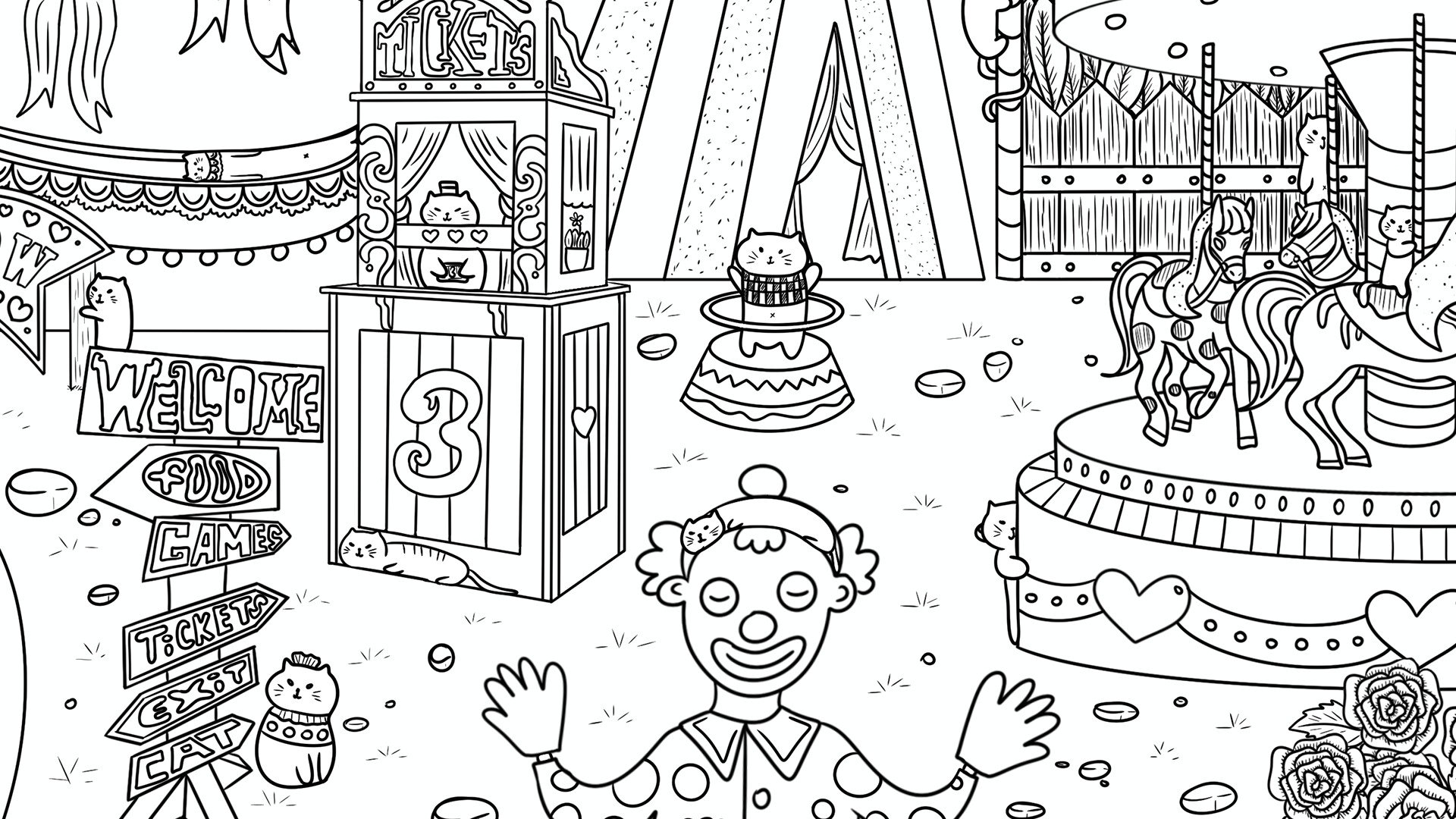 • Stunning, high resolution hand-drawn artwork set in unique circus-themed locations.
