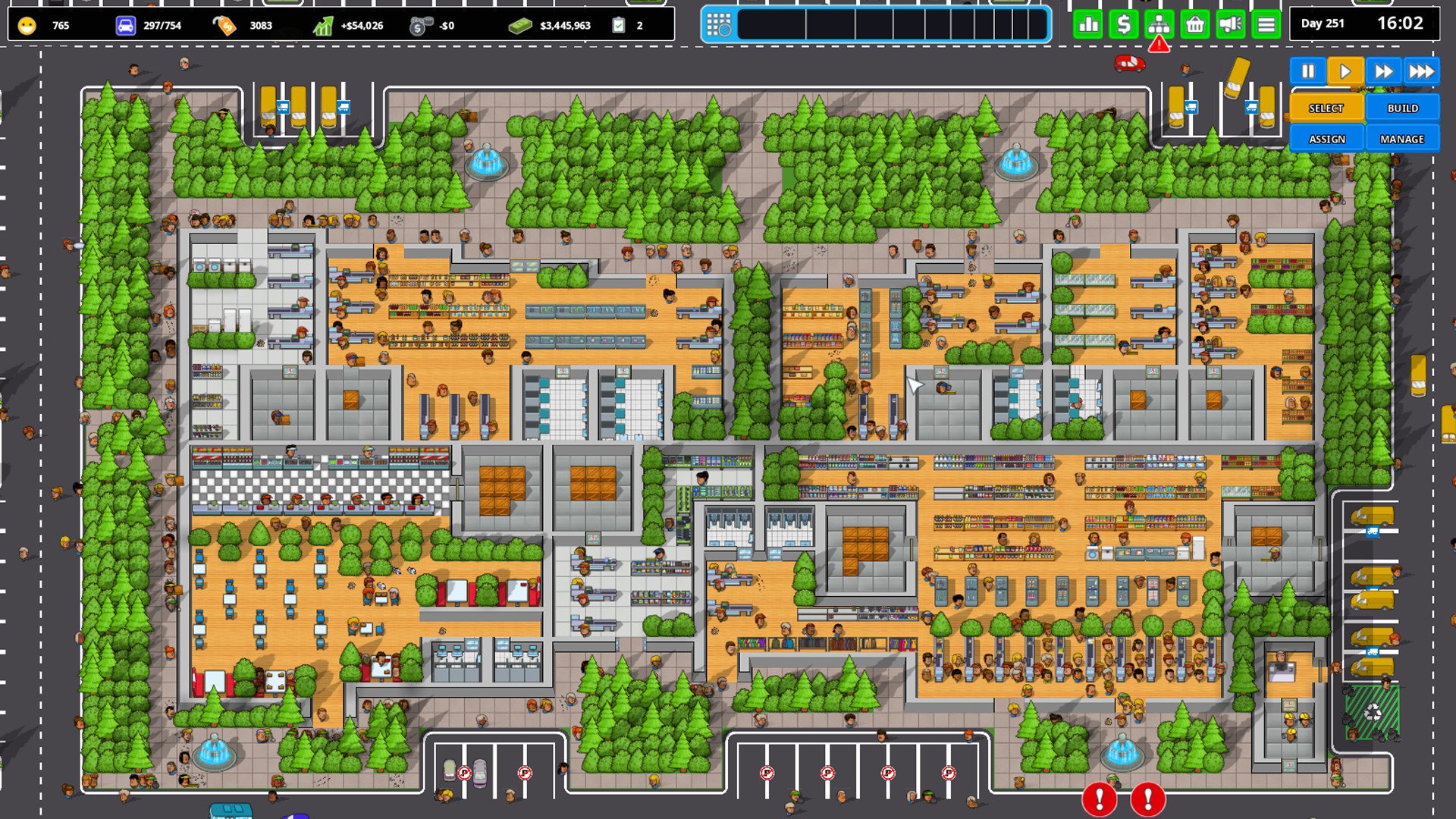 With thousands of characters and vehicles simulated on screen, the game provides a lively and dynamic atmosphere reminiscent of an ant colony. Hiring the right staff is crucial, as you must match their skills to the appropriate jobs. Efficient workforce deployment is key to keeping queues short, shelves stocked, and floors clean.
