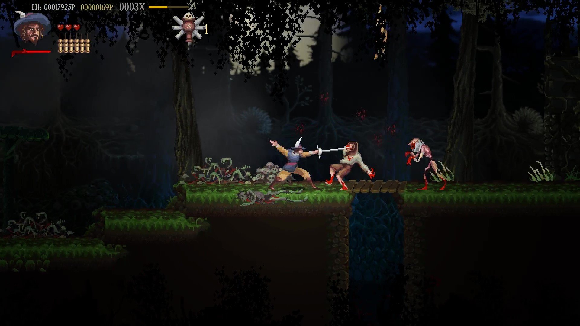 Gameplay demands precision and careful resource management. Every jump and attack must be perfectly timed, and understanding enemy behavior is crucial. Many foes are not only dangerous individually but can also interfere with each other; luring them into conflict can be a strategic move. Additionally, defeating the undead is no simple task: merely injuring them is not enough. Only a well-placed, final musket shot can completely shatter their cursed form, preventing any chance of resurrection.