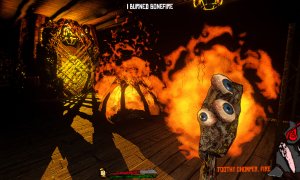 Combat in Golden Light is as unusual as the setting itself. Throughout the adventure, you'll come across an array of strange items—everything from a bat head and a fish head to a corrupted fetus and even something whimsically named “meat apple.” Not only can you interact with these grotesque objects, but you can also use them in creative ways, whether you're eating them to gain an edge or hurling them at your foes.