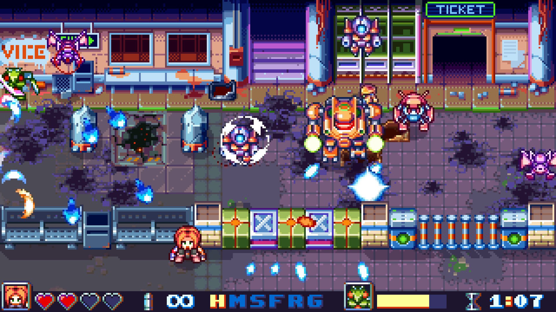 The dynamic, flashy visuals combined with a catchy 90’s synth-rock soundtrack create an immersive retro experience that is both nostalgic and exciting. Bot Vice successfully blends classic arcade style with modern gameplay elements, making it a must-play for fans of fast-paced action and vibrant pixel art.