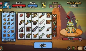 Spin Hero is a roguelike adventure that seamlessly blends deckbuilding strategy with luck-based gameplay. In this game, you navigate through procedurally generated stages where every decision can change the outcome of your journey. At the heart of the gameplay is an innovative reel-spinning mechanic that determines your fate in battle. As you spin, you'll collect a variety of powerful symbols that serve to strengthen your deck and unlock unique synergies.