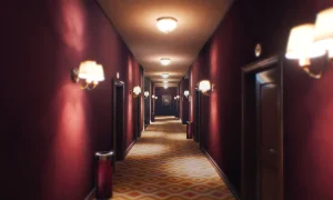 • A rich, atmospheric environment that encourages slow exploration of a detailed, multi-floor hotel