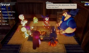Joining Sakuna are her loyal guardian Tama and a ragtag band of human outcasts. Together they forge weapons, armor, and hearty meals from the materials she gathers, and by fulfilling their requests you’ll unlock new recipes, equipment upgrades, and crafting options.