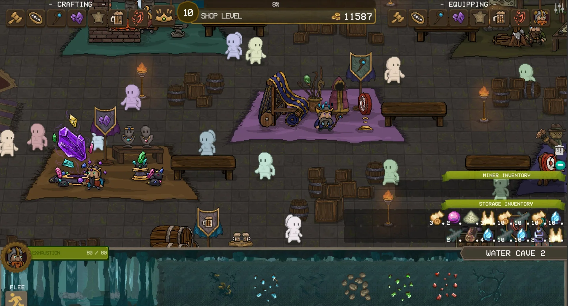 - Level up your shop through successful craft and sales, gaining access to stronger dwarves and more advanced recipes.