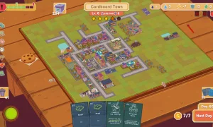 Cardboard Town is a charming city-building game that combines card-based mechanics with roguelite progression. You’ll draft and play Building Cards to expand your town, balancing key resources-electricity, water, environment and safety-while your population size determines your income each turn. Action Cards appear to help you tackle unexpected events, from minor mishaps to full-blown disasters, and Quest Cards keep your citizens happy with running objectives. Lay down Road Cards to connect your streets and watch cars zoom by as your city comes to life.