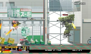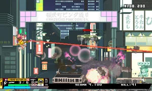 Nitro Express is a fast-paced, side-scrolling shoot ’em up built in Pixel Game Maker MV and locked at 30 FPS. You take on the role of an AVDS operative-part of the Atypical Vehicle Disposal Squad-tasked with ridding Nitro City (a futuristic Tokyo Special Administrative Region) of rogue autonomous drones, aka "Companions."