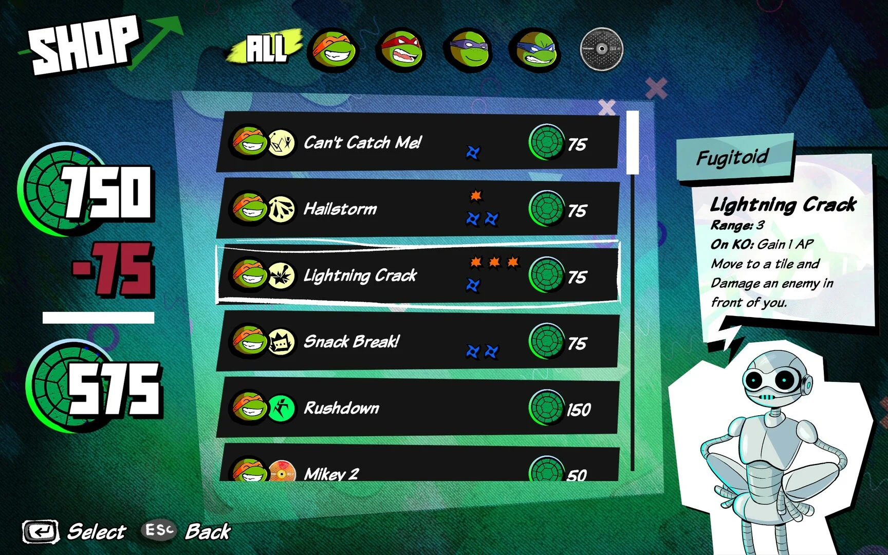 - Customizable movesets for Michelangelo, Donatello, Leonardo, and Raphael, so you can tailor each Turtle’s fighting style