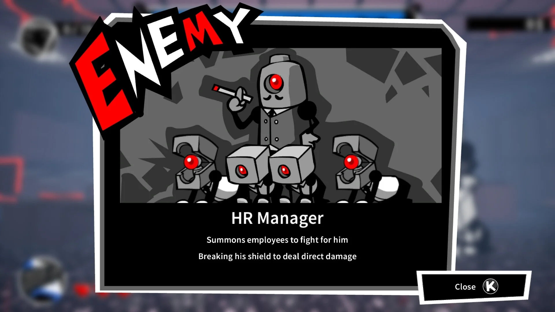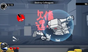 - Handle department-specific foes and environmental hazards as you push toward the CEO’s office.