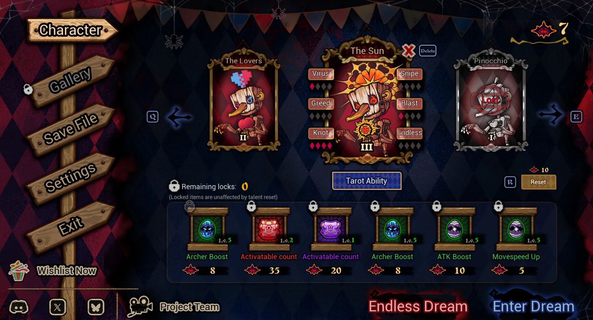 - Collect shards from completed Tarot Dreams to unlock the formidable Tarot Pinocchio form and merge its powers with your custom build.