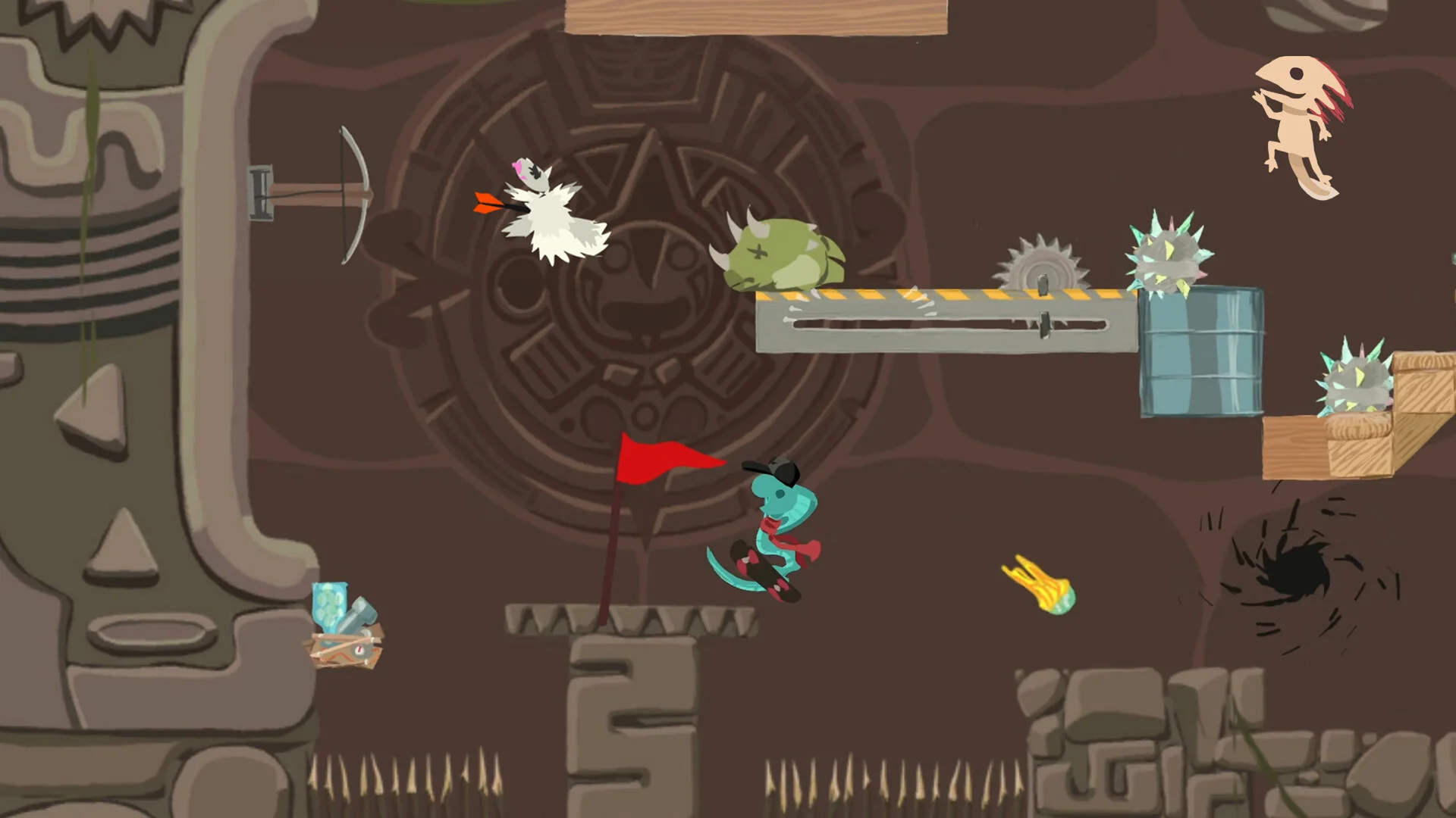 Please note: while there are solo Challenge levels, unlocking additional characters and stages requires playing in one of the main multiplayer modes (for example, Party Mode). Gather your friends, set the traps, and see who survives Ultimate Chicken Horse’s delightfully devious courses!
