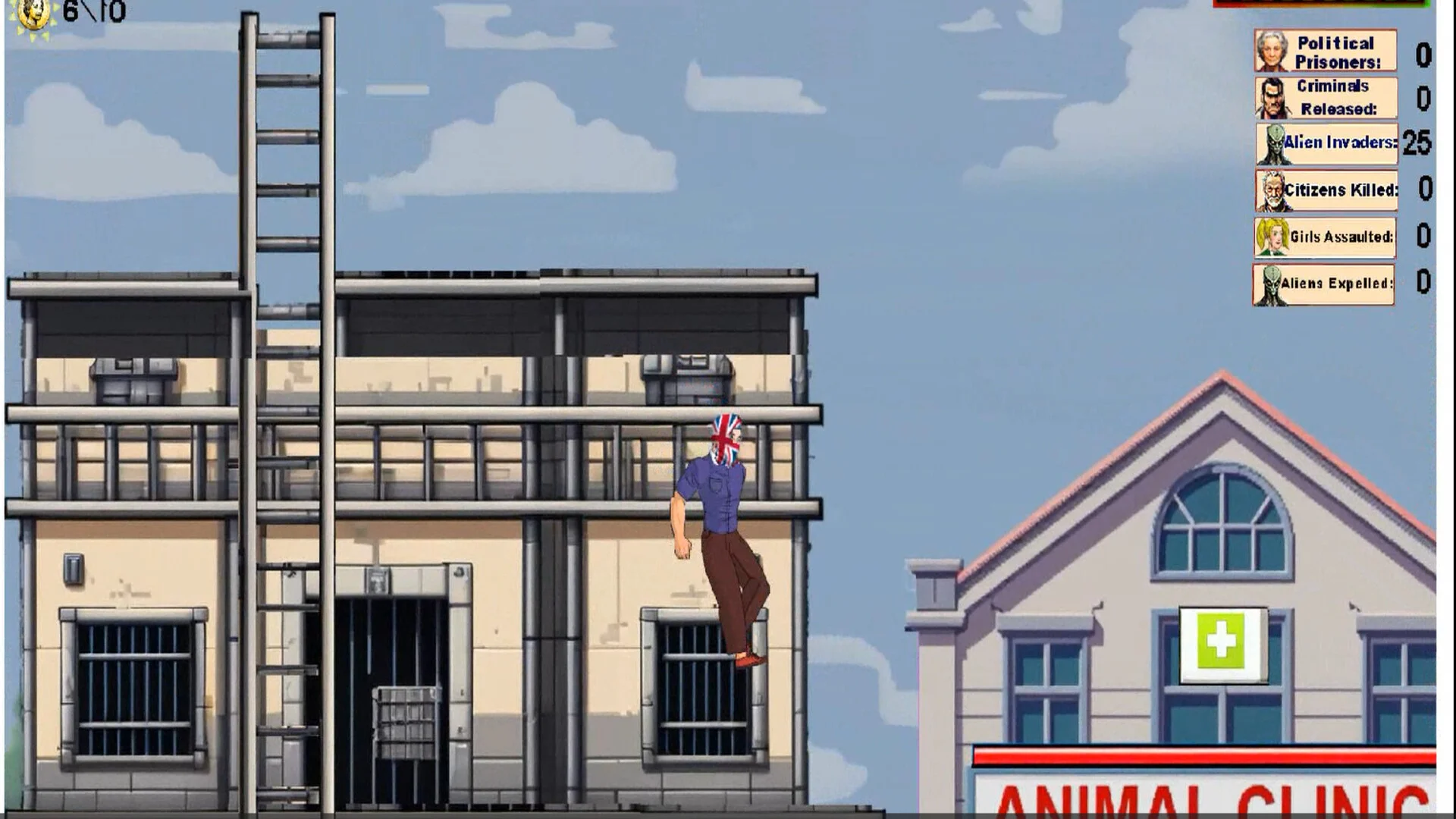 Armed with two unique ammunition types-"Free Speech" and "Truth"-plus the power of love (the only cure for those hate-filled extraterrestrials) and a trusty spanking stick, you’ll run, jump and blast your way through each level. Classic platform challenges await: dodge enemy fire, leap over deadly chasms, sidestep traps, eliminate alien foes and gather 10 coins per stage to power your mission forward.