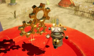 Gameplay centers on cleaning, repairing and helping the quirky robot inhabitants you meet. Scrub messes, collect trash and recycle it at RECYC0TRONS to earn extra cash, which you can spend in local stores. Along the way you’ll hunt for golden cogs, coins and hidden trinkets tucked into nooks and crannies, mixing light platforming with scavenger-hunt style exploration and tidy-up objectives.