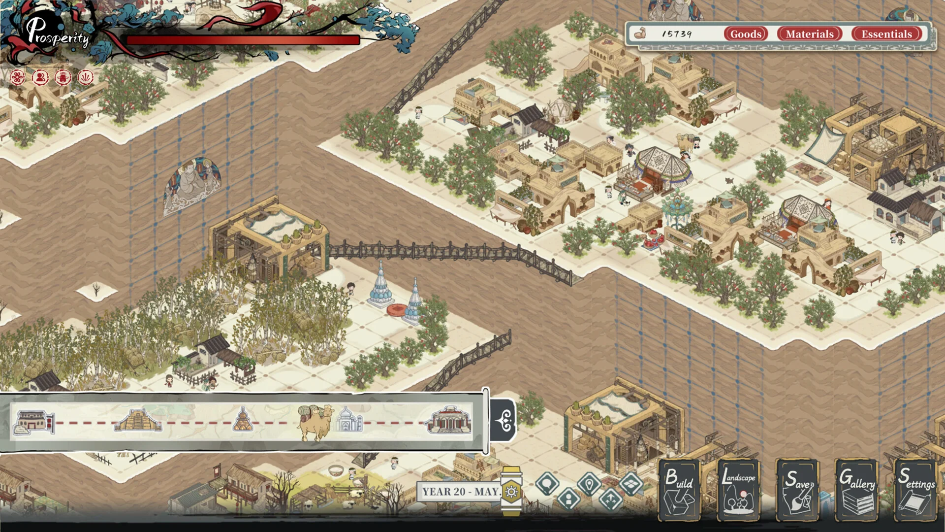 - Dunhuang and the Western Regions: As a Silk Road trading center, this area emphasizes building relay stations and organizing camel caravans. Choose trade routes east or west to bring back rarer materials and grow your town’s economy.