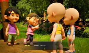 The game opens up from the start: there are no locked areas, no loading screens, and no timers. Players are invited to roam at their own pace, discover hidden corners, and stumble into gentle adventures-just like the freedom of childhood. You can play as Upin and Ipin together in single-player (the twin follows you) or team up locally with a friend.