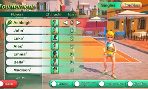 Choose from a colorful roster of stylized athletes, each with personality and visual flair. Play solo through tournaments to climb the ranks or face a friend in local multiplayer for competitive couch matches. Singles and doubles options add variety and replayability.