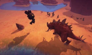The world is varied and unpredictable: rolling prairies, dense woods, misty swamps and frozen tundra, all with a full day/night cycle and changing weather that influence how different Goliaths perform. Environments and quests are procedurally generated, so exploration is always full of surprises.