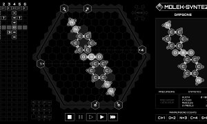MOLEK-SYNTEZ is set in December 2092 in Cluj-Napoca, Romania, where the cold seeps through the walls. Instead of venturing outside, you stay indoors, lighting another cigarette and continuing your work. In this game, you take on the role of a scientist using a molecular synthesizer to transform basic industrial chemicals like benzene, acetone, and hydrochloric acid into small molecules with various pharmacological effects. The challenge lies in programming the synthesizer to achieve these transformations efficiently.