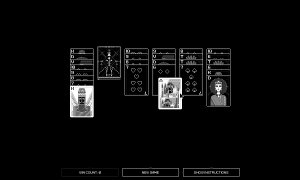 Additionally, MOLEK-SYNTEZ includes a unique solitaire game created by Zachtronics. If you find yourself stuck, you have the option to cheat by placing cards wherever you like, but be cautious not to overdo it and complicate your situation further.