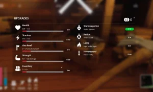 - Resource-driven progression: sell wood and recover relics to upgrade gear