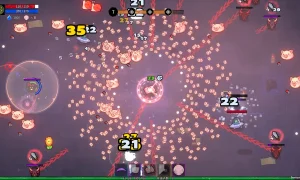 - Magic shooting gameplay that merges roguelike, tower defense, and vampire survival inspirations.