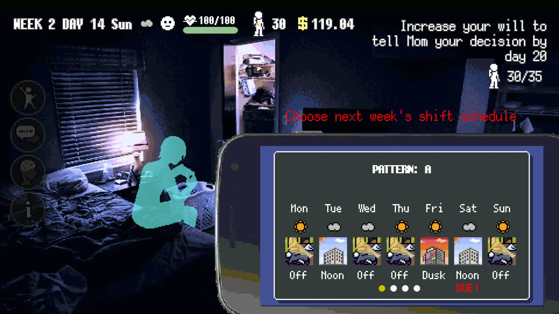 - Day-to-day resource management: taxes, rent, medical bills, and the need to rest