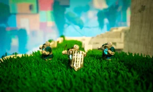 Visually the game stands out: each location has its own distinct look and mood, from misty ruins to sunlit plazas, and the presentation emphasizes the epic, small-scale feel of stone soldiers on grand floating battlegrounds. Combat rewards tactical thinking-position heavy weapons and walls, exploit terrain advantages, and time assaults to push the enemy back. Successful defenses let you launch counterattacks on enemy islands, scavenge weapons, call in fire support, and unlock new warriors, buildings and upgrades to strengthen your force.