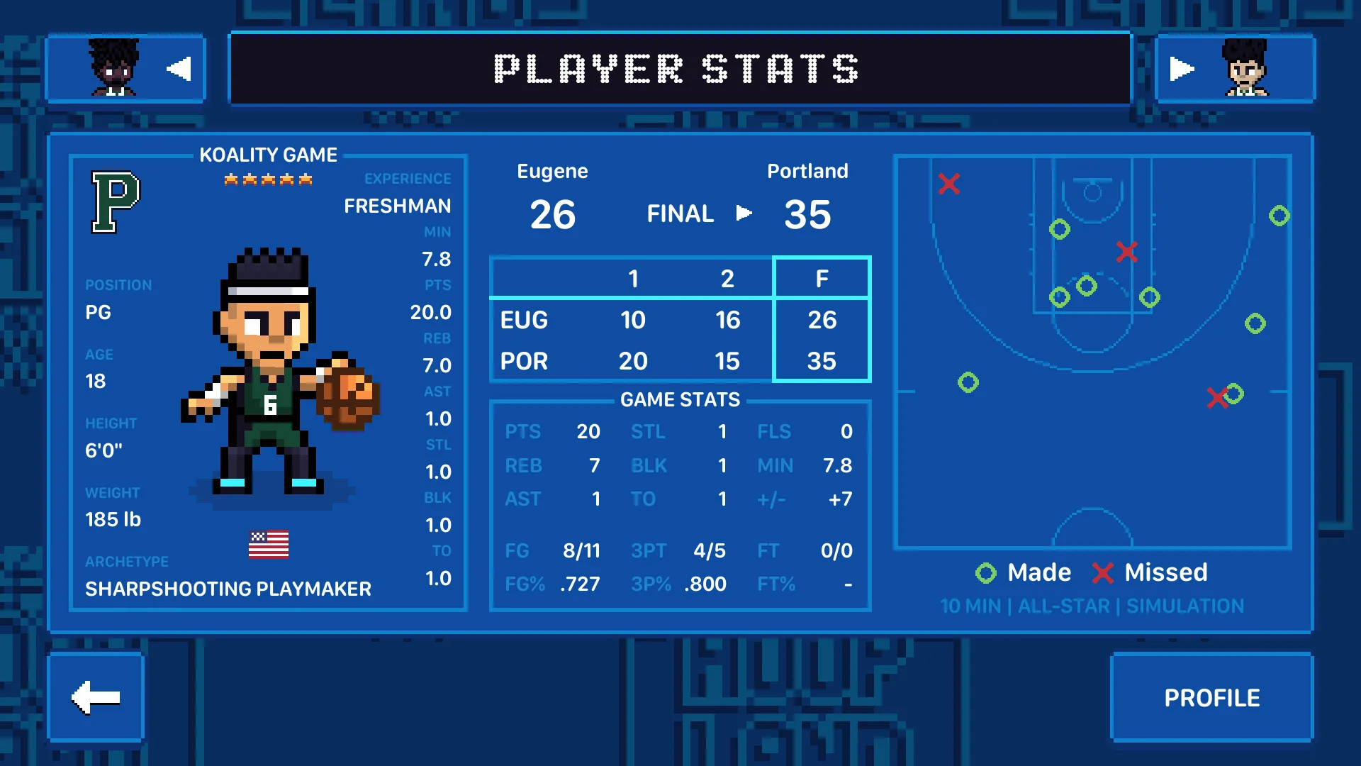 Hoop Land is a 2D basketball simulator that channels the feel of classic retro hoops games while blending college and professional leagues seamlessly into each season. Play matches yourself, watch them unfold, or let the simulation run - the game is a sandbox for all kinds of basketball action.
