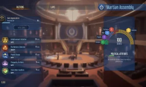 - New endgame politics: shape society with laws and pursue independence from Earth (Martian Assembly).