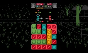 Kaamos Puzzle Roguelike is a compact, turn-based puzzle roguelike that blends tactical combat with match-and-drag tile mechanics. Battles play out on a looping grid where sliding rows and columns wraps tiles around the board, and you must match colors to counter visible incoming enemy actions. The result is fast, thoughtful duels where predicting foes and manipulating the board feel equally important.