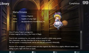 Between missions the Intermission screen lets you kit out your squad-equip gear, assign skills, and experiment with team compositions. Each character’s distinct strengths open up many strategic combinations, whether you want to focus on fan favorites or hunt for broken synergies. The game also includes rich extras: a detailed character and terminology encyclopedia that introduces the Touhou world, and a massive music room with over 200 tracks to enjoy.