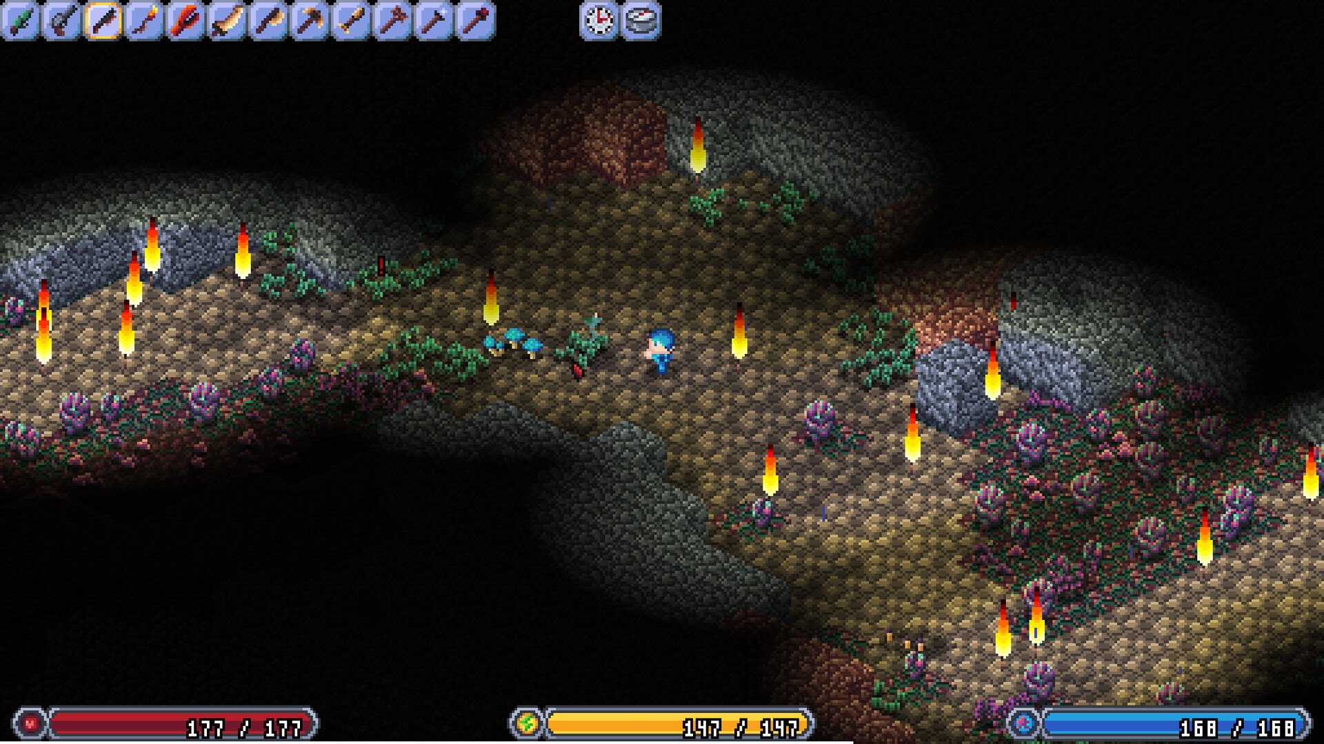 Begin your journey with basic tools and transform your environment through hard work and creativity. As you explore, you'll encounter formidable foes such as slimes, goblins, fungos, and skeletons. Defeat mighty bosses to gain their powers and forge extraordinary weapons and items.