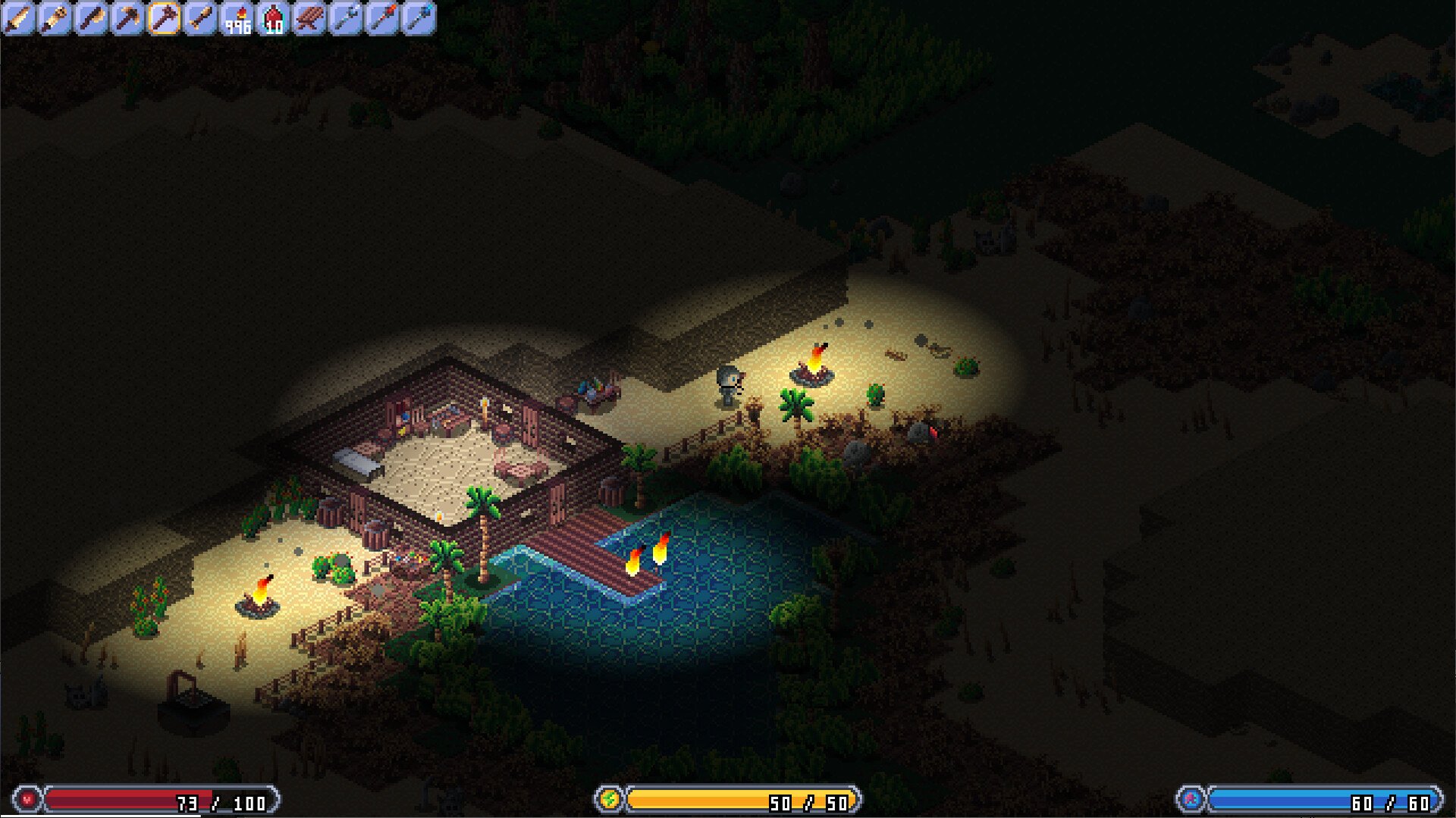 Isometria also offers a rich multiplayer experience. Team up with friends online or host a dedicated server to invite others to explore your world. With over 400 unique items to craft, you can choose from melee, ranged, or magical combat styles to suit your playstyle. Build your own base, level up, and gear your character in this dynamically generated world.