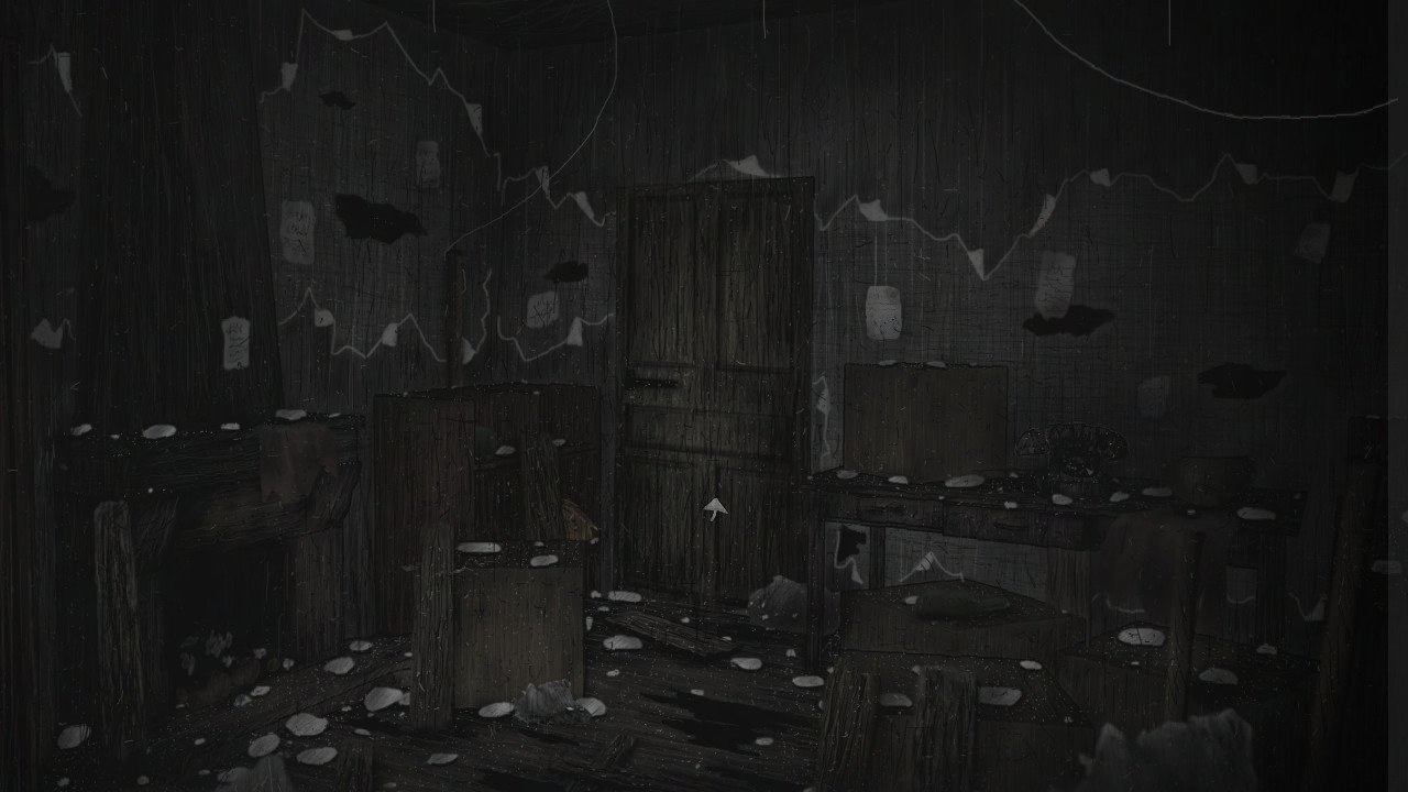Gameplay involves using the mouse to navigate rooms, interacting with objects, and using various controls such as "F" for the flashlight, "Ctrl" for the light bulb, "M" for the map, and "Esc" to exit or access the menu. The game does not include a pause menu. Performance is enhanced on better computers, affecting movement speed, time progression, and transitions. The game launches in full screen, with the option to change resolution using ALT + ENTER.